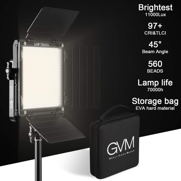 With ultra-light and durable metal structures, you can carry GVM-560AS video lights around with you wherever you go. Adjustable u-shaped bracket it can be lighting at different angles. To keep lighting in the other areas of the objects will not reflect the camera lens or cause a flash.